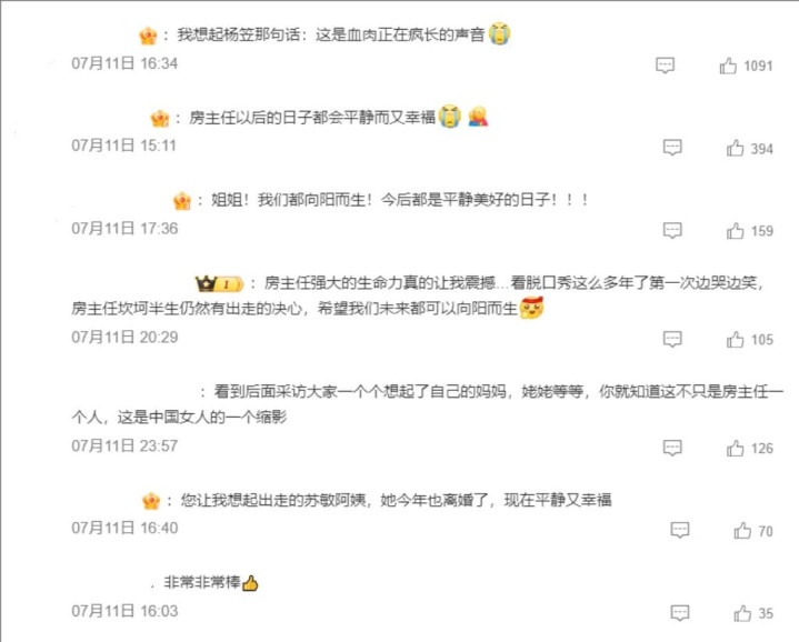 不少网友称:“房主任强大的生命力真的让我震撼”“看脱口秀这么多年了第一次边哭边笑”“10分钟很短但这是她30年的痛苦”。